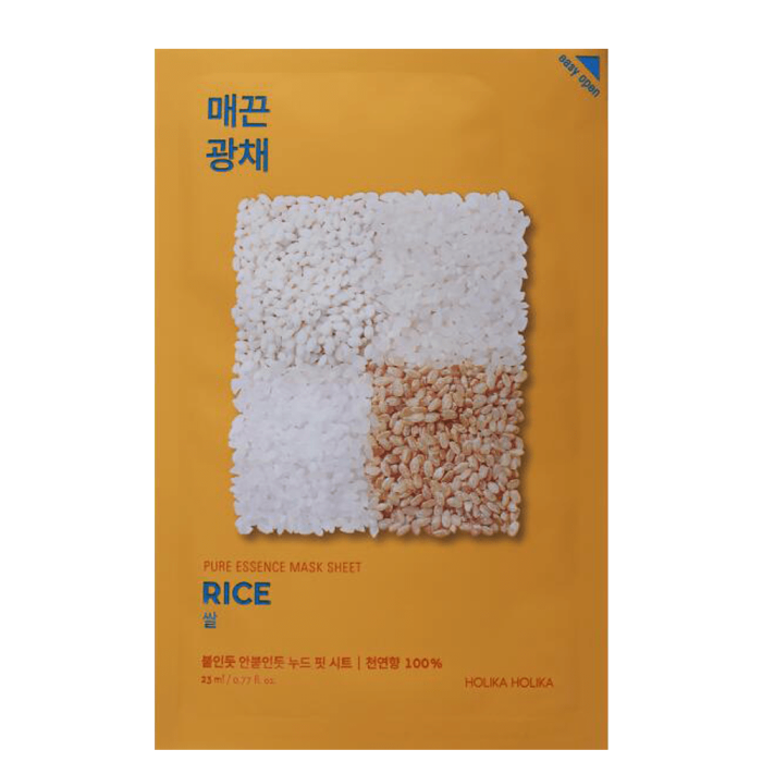 Pure Essence Mask Sheet Rice е шийт маска за лице с ориз. Интензивно хидратира в дълбочина и възвръща здравия вид на кожата. Формулата с ориз спомага за изсветляване на тъмните петна и озарява тена на лицето. Маската витализира, придава еластичност и гладкост на кожата. Има успокояващо действие и е подходяща дори за най-чувствителната кожа. Маската има тънка основа прилепва добре на всяко лице, като така осигурява по-добро проникване на полезните съставки. След използване кожата е сияйна, подхранена, хидратирана и мека на допир.