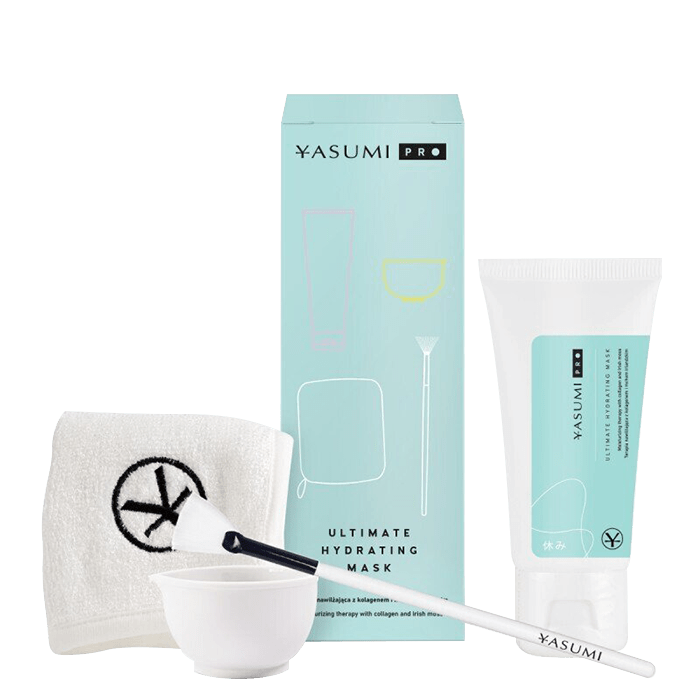 Yasumi Pro Ultimate Hydrating Mask е нежна кремообразна професионална маска за лице, която е разработена специално за суха и дехидратирана кожа. Хитозанът и морският колаген имат силни овлажняващи свойства, създават защитен филм върху повърхността на кожата, който ефективно предпазва от прекомерна загуба на вода. Кожата е хидратирана, освежена, озарена и с подобрена еластичност.