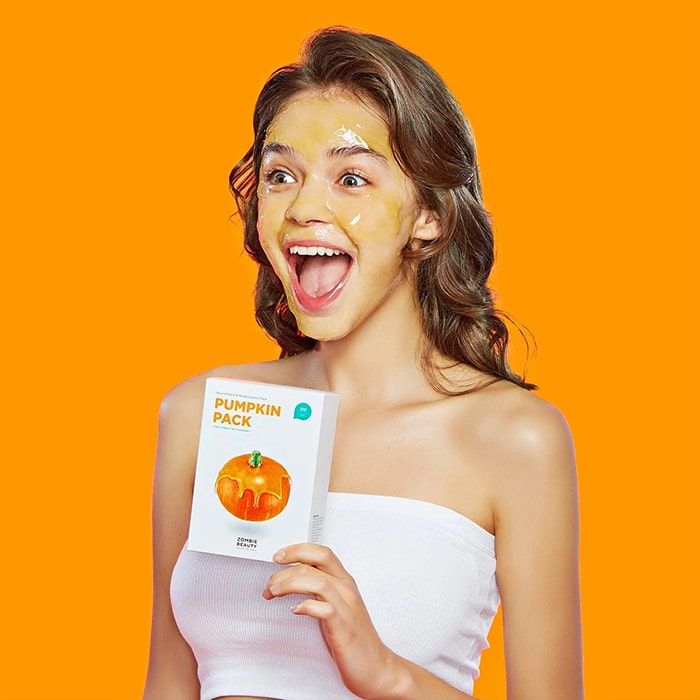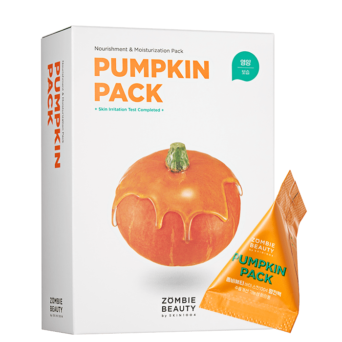 Комплектът маски за лице SKIN1004 Zombie Beauty Pumpkin Pack съдържа 16 бр. маски за подхранване, хидратация и успокояване на кожата. Съдържа 61% екстракт от тиква, който дълбоко хидратира, успокоява и подхранва кожата. Богатите фибри на тиквата съдържат много влага и са богати на хранителни вещества. Маската помага за подобряване на текстурата на кожата, благодарение на екстрактите от мед, пчелно млечице и прополис. В състава присъстват също прах от зелен чай и масло от зелен чай, които работят активно за съживяването на кожата. Зеленият чай е богат на антиоксиданти, които неутрализират свободните радикали и предотвратяват преждевременното стареене на кожата. Маската успокоява раздразненията на кожата, причинени от вредните фактори на околната среда. Осигурява богата хидратация на уморената, суха и лющеща се кожа. Помага за поддържането на стегнат и свеж вид на кожата.