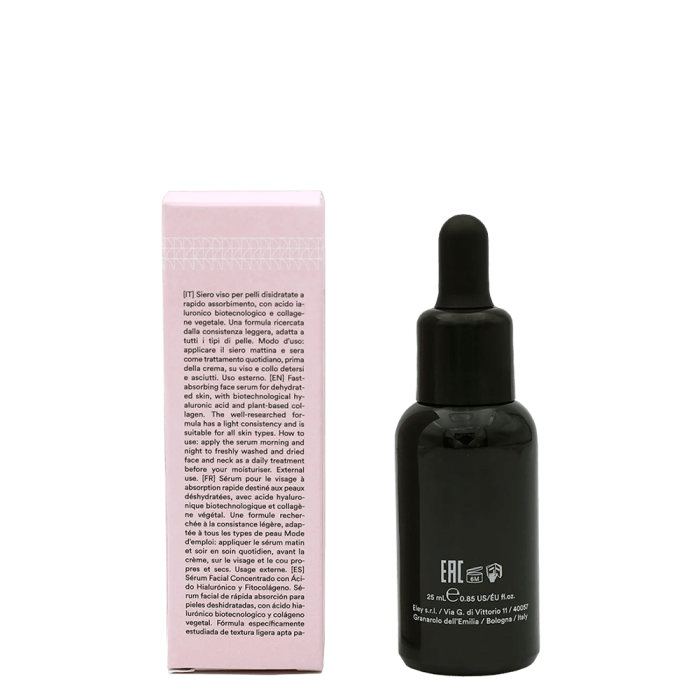 Concentrated Face Serum with Hyaluronic Acid and Phytocollagen е серум за дехидратирана кожа на лицето с висококонцентрирана формула с активни съставки от биотехнологична хиалуронова киселина и растителен колаген. Комбинираното действие на тези съставки дълбоко хидратира и подобрява еластичността на кожата. Антиоксидантното действие защитава клетките от увреждания, причинени от свободните радикали и забавя процеса на стареене. Серумът осигурява видимо по-свеж, здрав и подмладен вид на кожата. Биотехнологичният фитокомплекс с маточина и пребиотик, извлечен от корен от якон успокояват и правят кожата по-сияйна и устойчива на раздразнения.