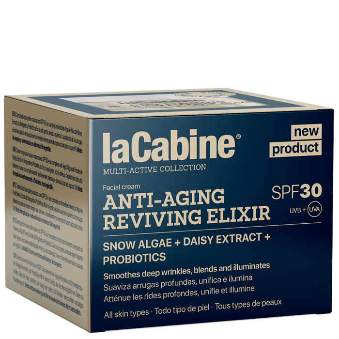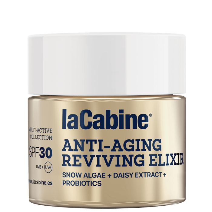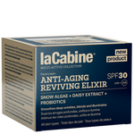 Anti-Aging Reviving Elixir SPF30 Facial Cream съдържа още екстакт от маргаритка, масло от шеа, пробиотици и карнозин. Доказано ефективни съставки против стареене. Комплексното им действие стимулира регенерацията на клетките и възстановява кожната бариера. Увеличава плътността на епидермиса и осигурява незабавен стягащ ефект. Намалява както хоризонталните, така и вертикалните бръчки. Предотвратява загубата на еластичност, изсветлява тъмните петна и изравнява тена. Кожата е по-плътна, сияйна и видимо по-млада и жизнена.