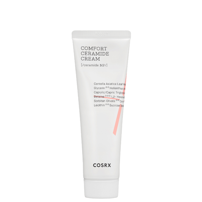 COSRX Balancium Comfort Ceramide Cream е лек хидратиращ крем, подходящ за чувствителна, раздразнена и зачервена кожа. Съдържа 3 вида серамиди, които укрепват кожната бариера и регенерират клетките. Възстановява баланса на влага и масла в кожата, и подобрява еластичността. Успокоява чувствителната кожа и ѝ осигурява дълготрайна хидратация и подхранване.
