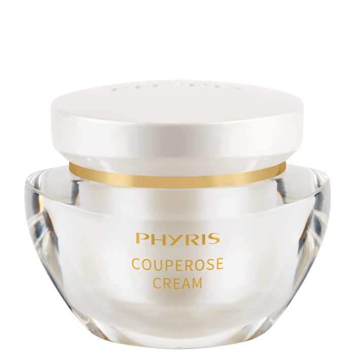 Кремът за лице PHYRIS Skin Control Couperose Cream оказва терапевтично въздействие върху проблемна кожа, склонна към купероза, като едновременно осигурява регенериращ и подмладяващ ефект. Кремът е универсален и е подходящ за употреба от мъже и жени, които страдат от локални зачервявания и повишена видимост на капилярната мрежа по кожата на лицето.