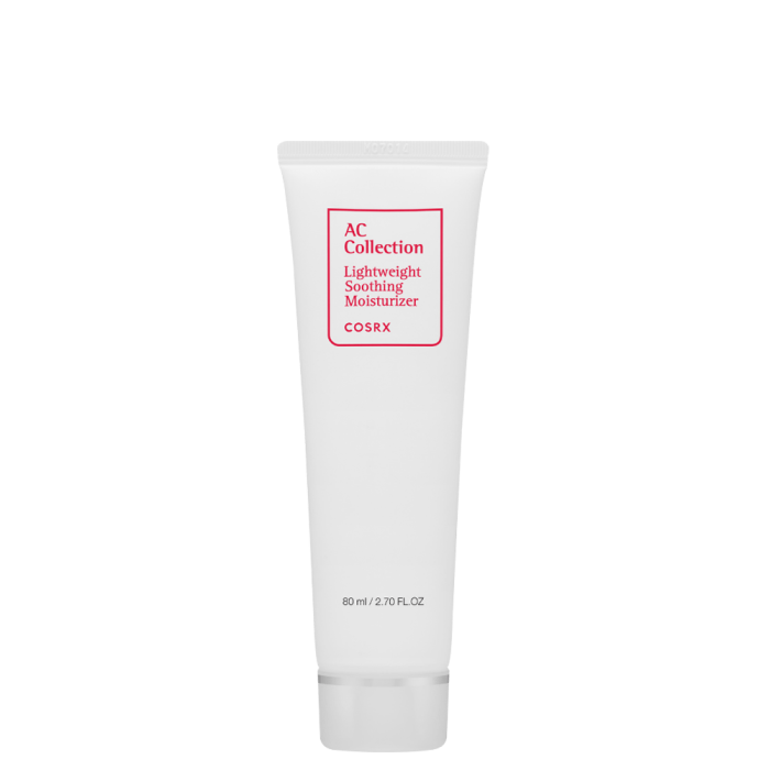 Cosrx AC Collection Lightweight Soothing Moisturizer_2.0 е хидратиращ лосион за кожа, склонна към акне. Успокоява, поддържа оптималните нива на влага в кожата и предотвратява появата на акне. Разработен на основата на чаено дърво и Centella AC-Rx комплекс, който оптимизира естествените регенеративни ползи на азиатската центела. Успокоява раздразненията и укрепва кожната бариера. Хидратира кожата в дълбочина, без да утежнява. Подходящ за мазна кожа и кожа, склонна към акне. Некомедогенен, не съдържа аромати, масла, силикони и глутен.