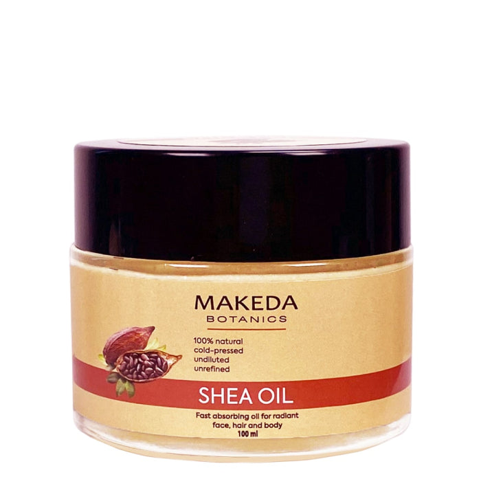 Чистото масло на Makeda Botanics от шеа (карите) е богато на редица мастни киселини, микроелементи и витамини, сред които A, D, F и E. Изключително ефективно е в защитата на кожата срещу слънцето, вятъра и по-сухия климат. Много подходящо за суха и зряла кожа, заличава фините линии и бръчки и стимулира производството на колаген. Разнообразието от наситени и ненаситени мастни киселини в него подхранва кожата в дълбочина и я заглажда. Има регенериращи свойства и помага за зарастване на малки рани и белези, възстановява целостта на кожата, премахвайки нарушенията по текстурата ѝ. Предпазва косата от цъфтеж и накъсване и възвръща здравия ѝ вид.