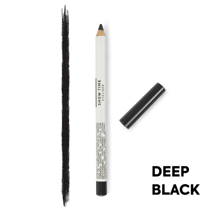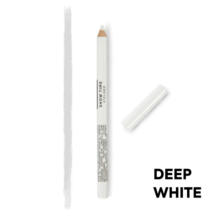 Кремообразен молив за очи с дълготраен ефект SHOW TIME Eyeliner осигурява перфектно контуриране на очите. Формулата с интензивно наситени пигменти и лека текстура позволява лесно нанасяне и плъзгане по дължина на клепача. Линията е хомогенно и плътно подчертана, а постигнатият контур е дълготрайно устойчив и не се размазва. Придава на погледа изразителен и озарен вид. Не предизвиква раздразнение, дори да бъде нанесен във водната линия на окото. Моливът се предлага в четири цвята - класическите черен и бял, а за постигане на по-експериментални и артистични визии - гамата включва и молив за очи в син и зелен цвят.