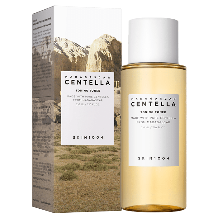 Тонерът SKIN1004 Madagascar Centella Toning Toner нежно ексфолира кожата, като едновременно с това успокоява раздразненията, хидратира и изсветлява. Съдържа 84% екстракт от азиатска центела, хиалуронова киселина, бетаин и съставки против стареене, които правят кожата озарена и гладка, като се борят с появата на бръчки и фини линии. Ниацинамидът подобрява цялостното състояние и текстура на кожата, помага за изсветляването на белези от акне. Съдържа EWG зелени съставки (оценка на съставките, която ги сертифицира като „зелени”, за да можете да се наслаждавате на използването на продуктите без притеснения). Няма аромат и не оставя лепкав слой върху кожата. Подходящ за чувствителна кожа.