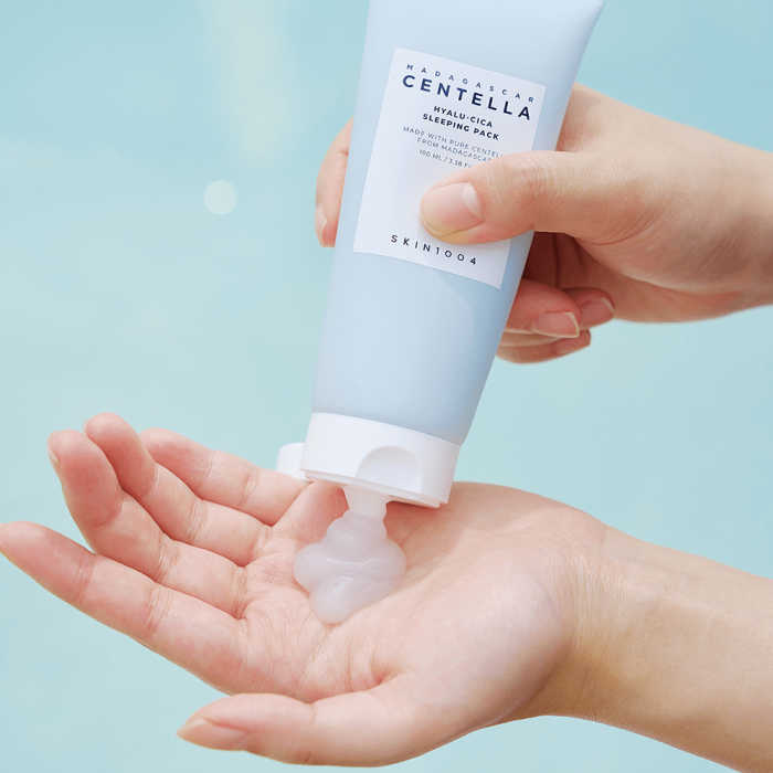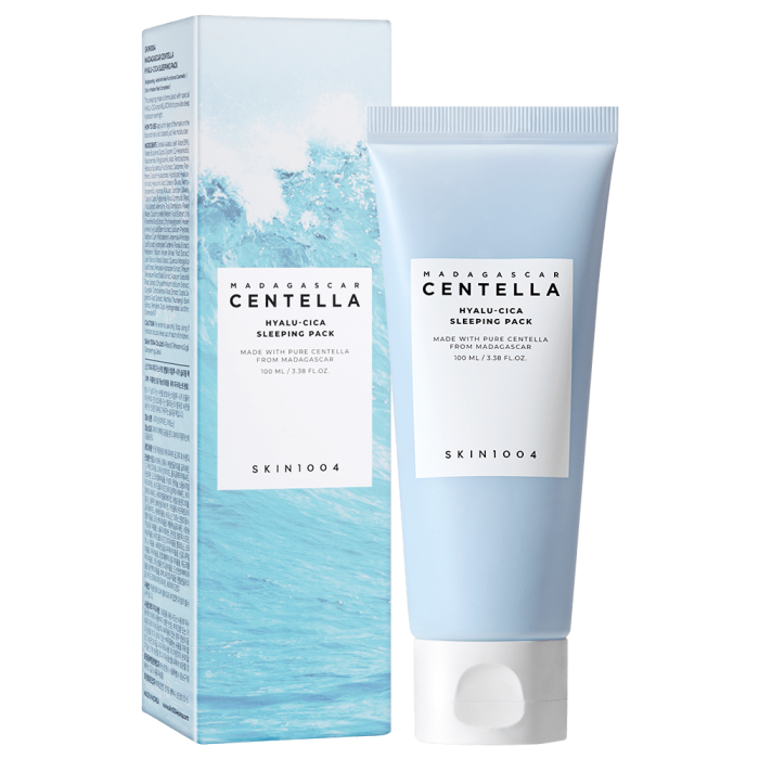 Нощната маска SKIN1004 Madagascar Centella HYALU-CICA Sleeping Pack възстановява нивото на хидратацията на кожата, регулира баланса на влага и масла, интензивно регенерира, успокоява и укрепва кожната бариера. Повишава еластичността, като подсилва и естествената липидна бариера. Съдържа хиалуронова киселина, азиатска центела, ниацинамид, аденозин и серамиди. Хиалуроновата киселина и серамидите спомагат за поддържането на оптимални нива на влага, а екстрактът от азиатска центела от Мадагаскар облекчава раздразненията и зачервяванията. Ниацинамидът и аденозинът изсветляват кожата и се борят активно срещу появата на бръчките. Успокоява сухата и чувствителна кожа и осигурява енергия. Естествените съставки Artemisia Herba и екстракт от хибискус Esculentus повишават еластичността на кожата, озаряват и защитават кожната бариера.