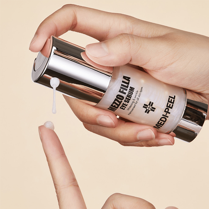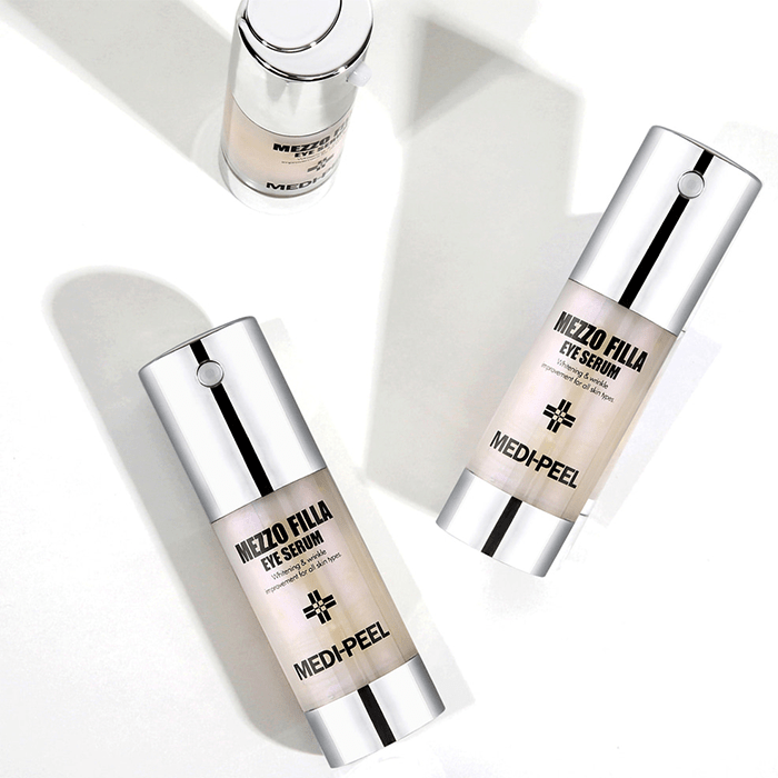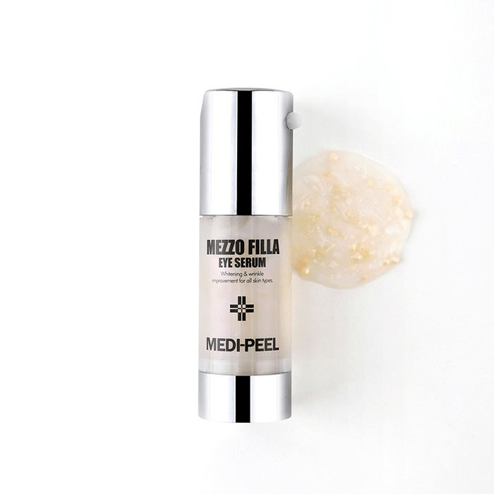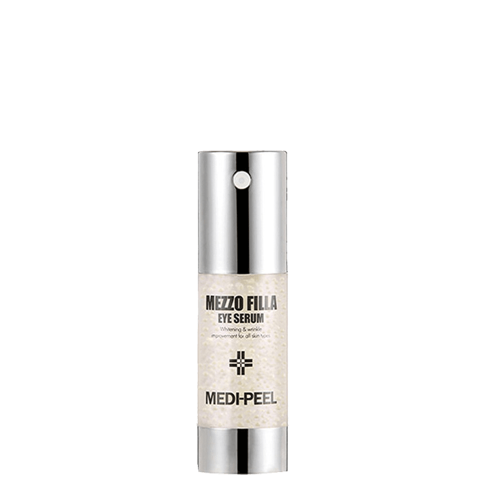 Околоочният серум Medi-Peel Mezzo Filla Eye Serum осигурява интензивна хидратация на околоочната зона и се бори с признаците на стареене. Комплексът от 7 вида пептиди действа подмладяващо, спомага за изглаждане на бръчките и запазва младия вид на кожата. Бори се с мимическите бръчки и подобрява еластичността. Стимулира производството на колаген и еластин. Ниацинамидът помага за изравняването на тена и се бори с фините линии и бръчките. Съдържа патентовани съставки срещу появата на бръчки.