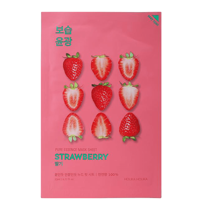Pure Essence Mask Sheet Strawberry е шийт маска за лице с ягода. Освежава и изсветлява кожата. Помага за изглаждане на тена на лицето и се бори с кожните несъвършенства и белези. Озарява, хидратира и подхранва кожата. Деликатно насища клетките на кожата с полезни вещества и значително подобрява нейното състояние. Придава еластичност, идеално тонизира и укрепва кожната бариера. С прекрасен аромат на ягоди и цитрусови плодове. Маската има тънка основа прилепва добре на всяко лице, като така осигурява по-добро проникване на полезните съставки. След използване кожата е сияйна, подхранена, хидратирана и мека на допир.
