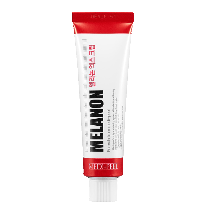 Озаряващият и изсветляващ крем Medi-Peel Melanon X Cream предотвратява образуването на петна и лунички върху кожата, намалявайки производството на меланин. Транексамовата киселина се бори с хиперпигментацията и петната, успокоява и има противовъзпалително действие. Ниацинамидът и аскорбиновата киселина имат антиоксидантен ефект, помагат за укрепването на кожната бариера, като едновременно с това хидратират и тонизират. Алфа-арбутинът спомага за изсветляването на кожата, като потиска активността на клетките, произвеждащи меланин.