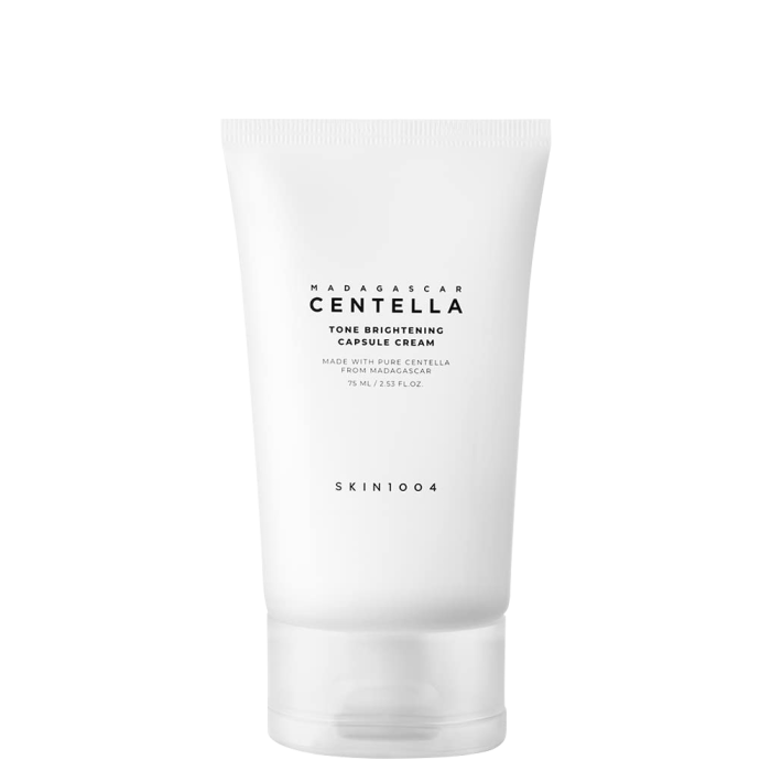 SKIN1004 Madagascar Centella Tone Brightening Capsule Cream озарява кожата, като едновременно с това успокоява раздразненията. Съдържа екстракт от азиатска центела, която е известна с регенериращите и успокояващите си свойства. Стимулира синтеза на хиалуронова киселина, хидратира, регулира баланса на влага в кожата, намалява хиперпигментацията, дразненето и зачервяването. Съдържа ниацинамид, който подобрява и изравнява тена, омекотява кожата и ефективно действа в посока намаляване на фините линии, бръчките и порите. Транексамовата киселина изсветлява и озарява кожата, намалява хиперпигментацията и белезите от акне, предотвратява прекомерното производство на меланин в кожата.