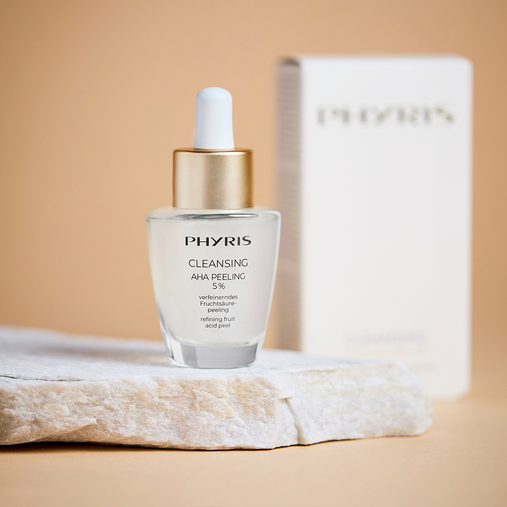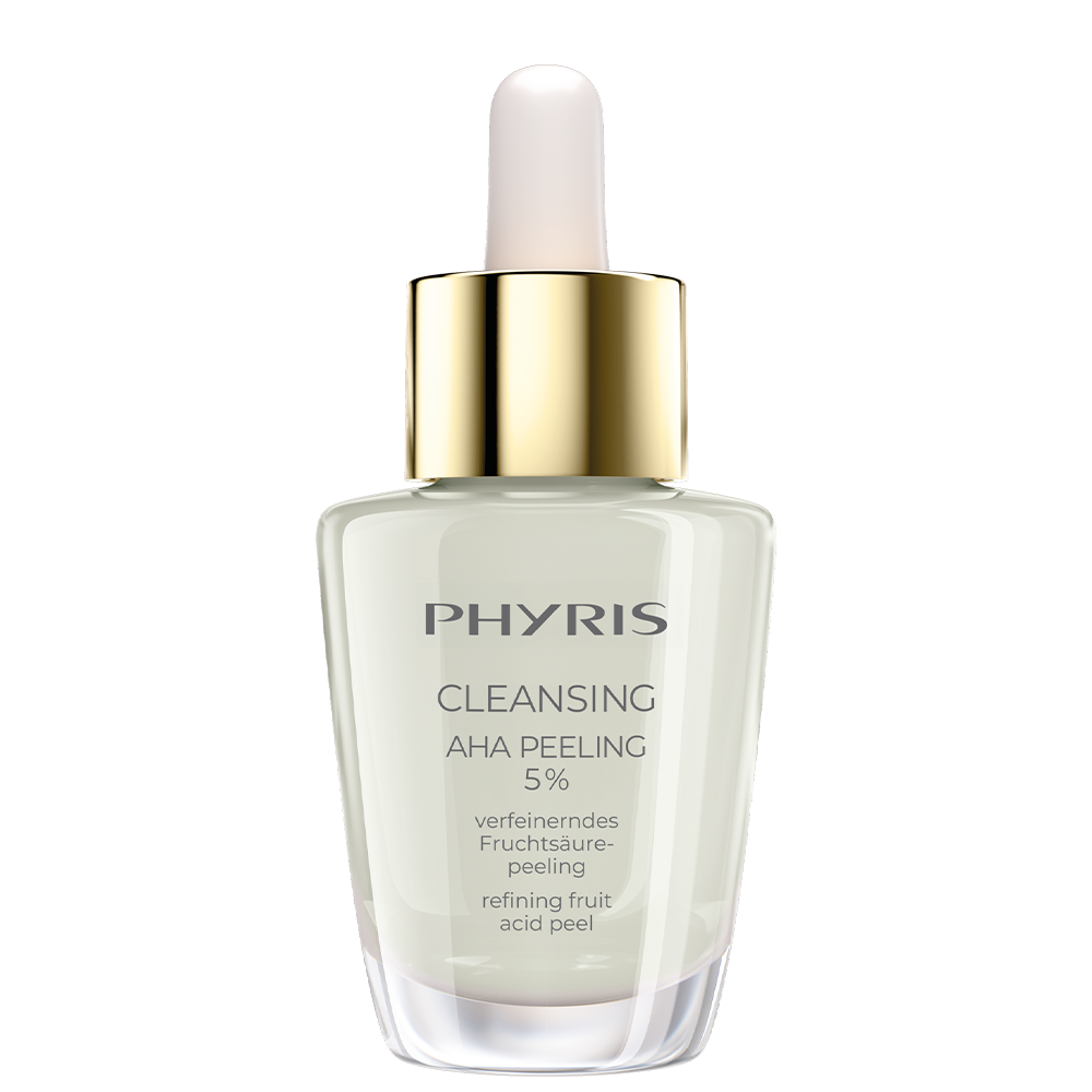 Пилинг серумът PHYRIS AHA Peeling 5% е лек антибактериален серум с алфа-хидрокси киселини (5% плодови киселини) и pH 4.0-4.5. Стяга, изглажда и регенерира кожата, като едновременно с това редуцира фините линии и изглажда текстурата на кожата.