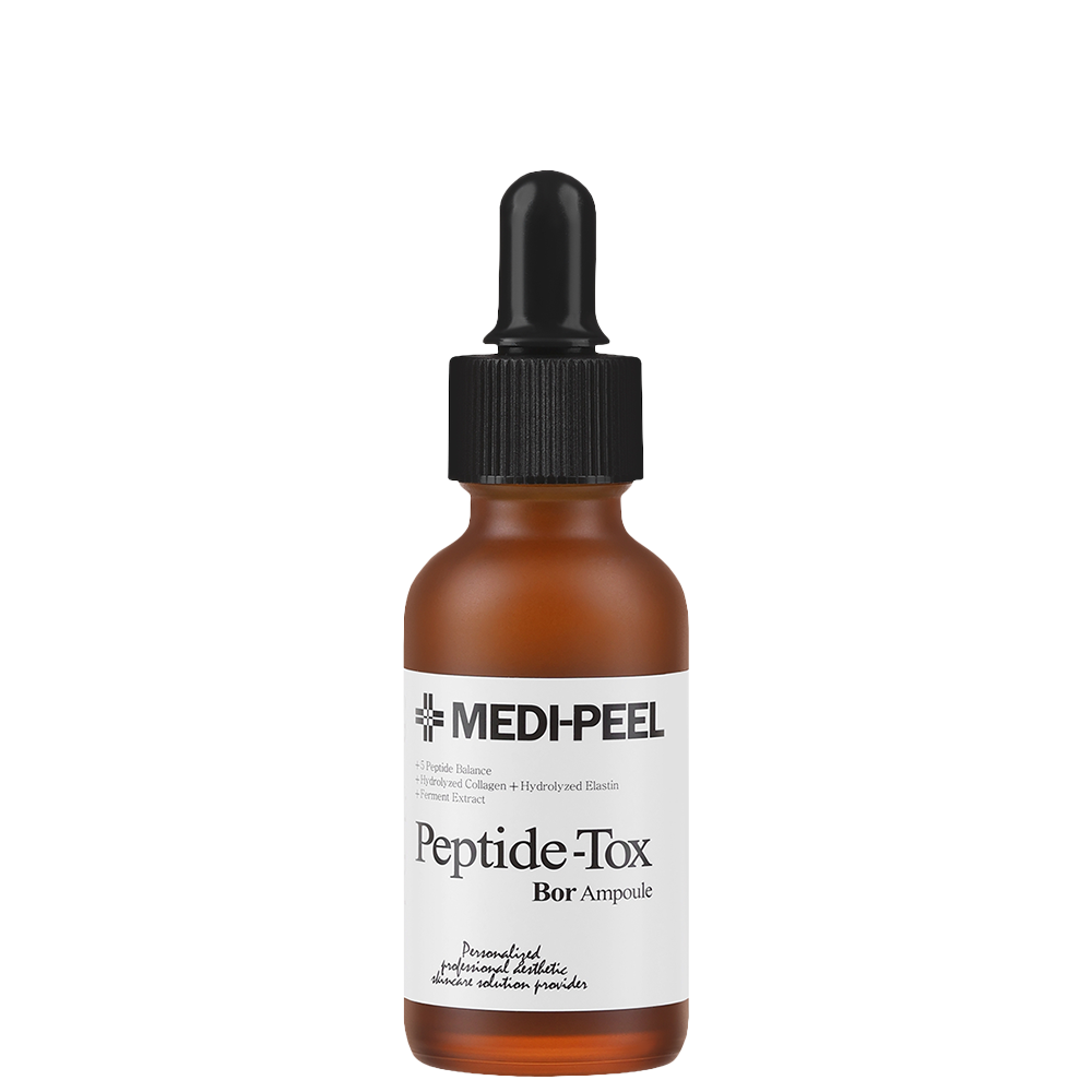 Мултипептидният серум Medi-Peel Bor-Tox Peptide Ampoule значително намалява признаците на стареене, като създава плътност и здравина, и изглажда бръчките. Серумът влияе на появата на мимическите и дълбоките бръчки по кожата на лицето и шията. Осигурява интензивна грижа с лифтинг ефект.