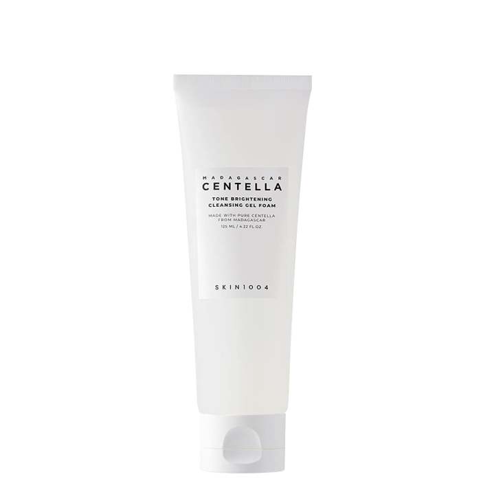 SKIN1004 Madagascar Centella Tone Brightening Cleansing Gel Foam е почистващ гел, който се трансформира в нежна пяна и почиства кожата, като ефективно премахва остатъците от слънцезащита, грим и замърсявания. Съдържа екстракт от азиатска центела, ниацинамид, транексамова киселина и мадекасозид, благодарение на които кожата е регенерирана, успокоена, изсветлена и с подобрена хидратация.