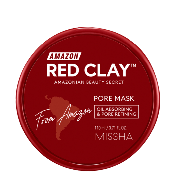 MISSHA Amazon Red Clay Pore Mask е почистваща маска с червена глина, която абсорбира излишния себум от кожата и премахва черните точки от кожата. Съдържа комплекс от амазонска червена глина, AHA и BHA киселини. Почиства порите в дълбочина, премахва себума и предотвратява появата на черни точки.
