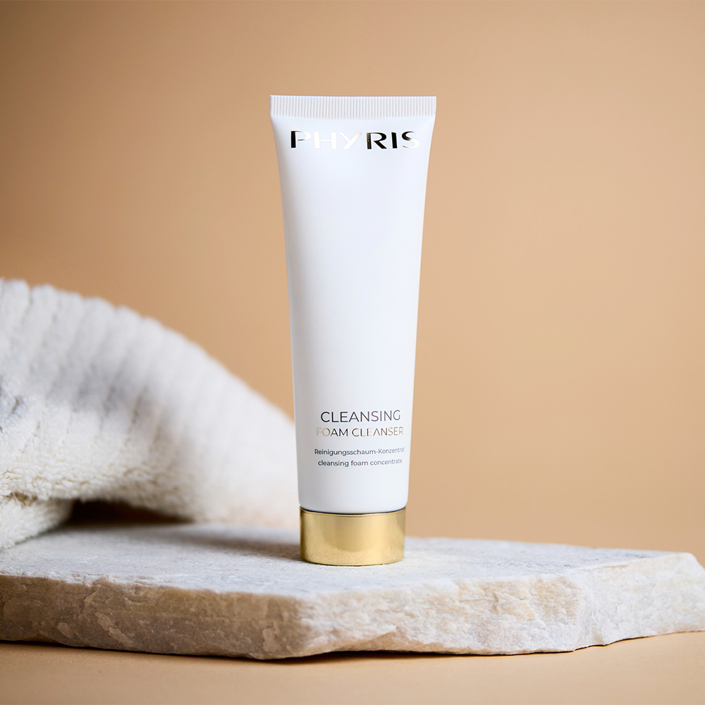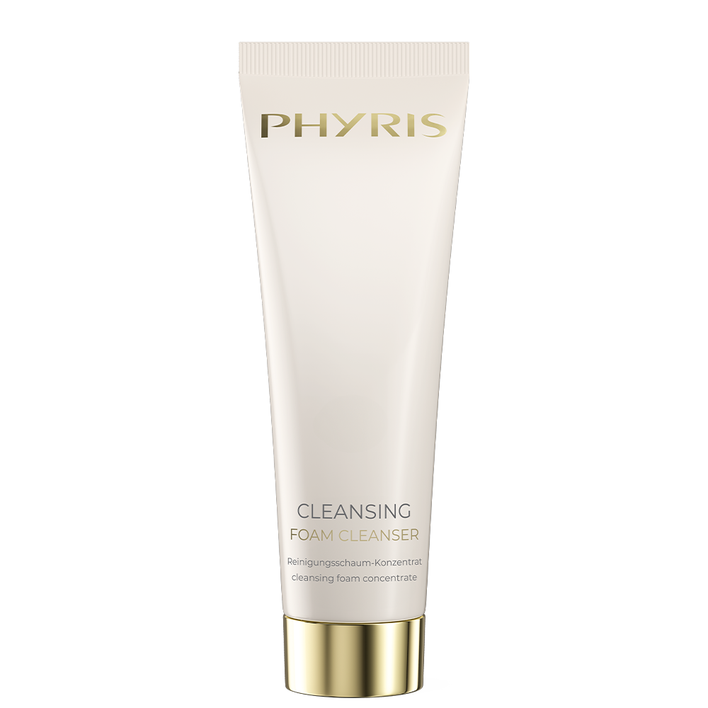 PHYRIS Foam Cleanser е нежна почистваща пяна за лице с микро-масажни перли, които осигуряват на кожата дълбоко почистване без да я пресушават. При смесване с вода образува фина и мека пяна, която ефективно премахва грим, замърсявания и прах от кожата на лицето. Обогатена с пчелен восък, който предпазва кожата от загуба на влага и повишава защитните ѝ функции.