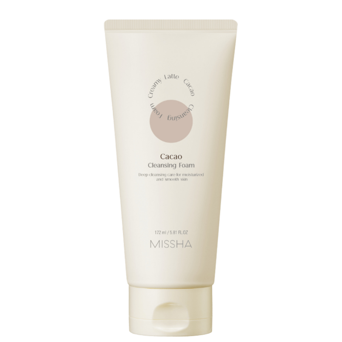 MISSHA Creamy Latte Cleansing Foam Cacao е почистваща пяна за лице с какао, която ефективно премахва замърсяванията от кожата, без да я пресушава. Съдържа мляко и екстракт от какао, които придават на пяната нежен сладък аромат. Има анти-ейдж свойства, възстановява еластичността на кожата, подобрява текстурата и регенерира. Освежава и ревитализира, като оставя кожата хидратирана, подхранена и почистена в дълбочина.