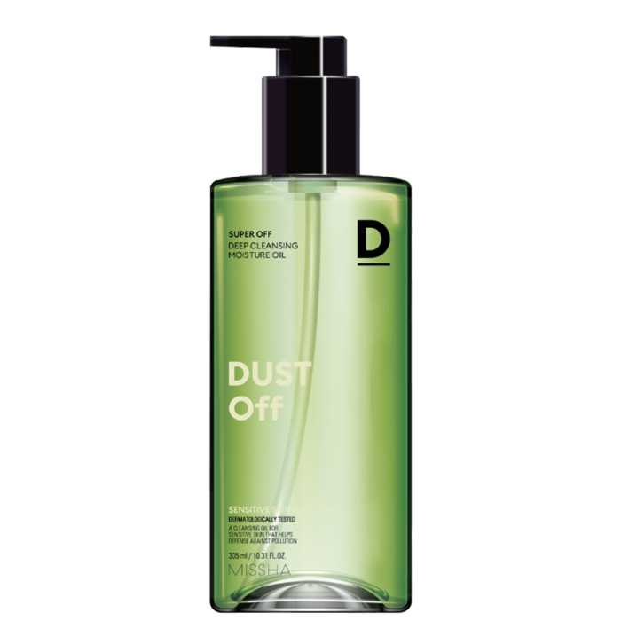 MISSHA Super Off Cleansing Oil Dust Off е олио за мазна и комбинирана кожа на маслена основа, което почиства в дълбочина кожата на лицето, като премахва замърсявания, прахови частици, остатъци от грим и слънцезащита. Помага за балансирането на себума в кожата и възстановява оптималния баланс на масла и влага в кожата. Премахва дори тежък, водоустойчив грим.