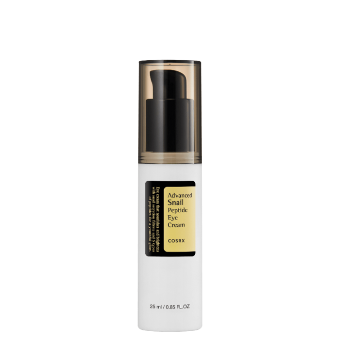 Cosrx Advanced Snail Peptide Eye Cream е подхранващ и хидратиращ крем за околоочната зона. Съдържа екстракт от прополис, който хидратира зоната и има антибактериално действие. Формулата е обогатена с витамин B3, който има противовъзпалителни, озаряващи, успокояващи и регенериращи свойства. Филтратът от слуз на охлюв има силно хидратиращо действие, противодейства на появата на акне и регенерира.
