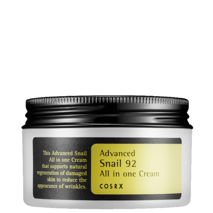 COSRX Advanced Snail 92 All In One Cream насърчава естествената регенерация на кожните клетки и осигурява дълготрайна хидратация и подхранване. Съдържа 92% слуз на охлюв, хиалуронова киселина, пантенол и алантоин, които успокояват кожата, подхранват я и подобряват трайно нейната еластичност.