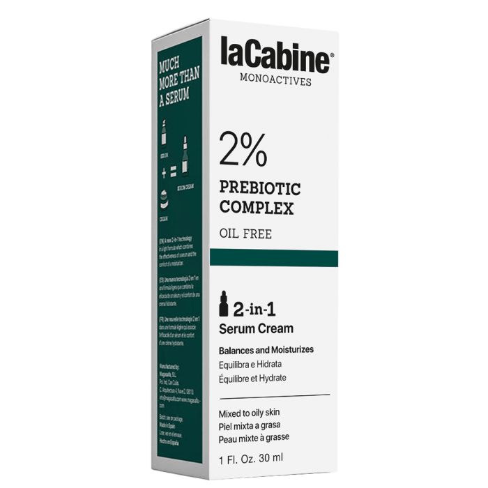2% Prebiotic Complex Serum Cream стимулира действието на собствената микрофлора, неутрализирайки патогенните микроорганизми. По този начин балансира и ефективно подпомага нормалното функциониране на кожата. Активира естествената защитна бариера и обновяването на клетките, като същевременно поддържа оптимална хидратация и подмладява.