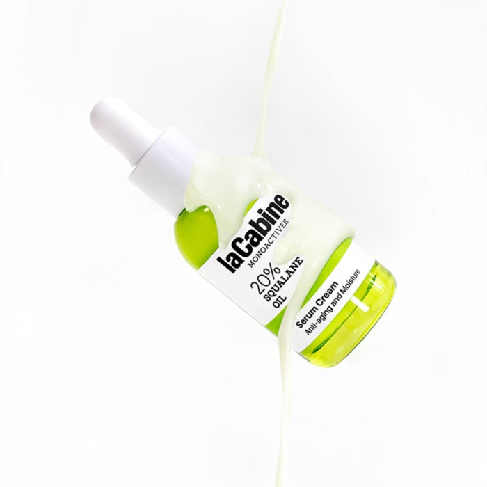 Серум-крем 20% Squalane 2-in-1 Serum Cream съдържа още витамин Е и оризово нишесте, които осигуряват допълнителна хидратация и подхранване, действат против стареене и защитават.