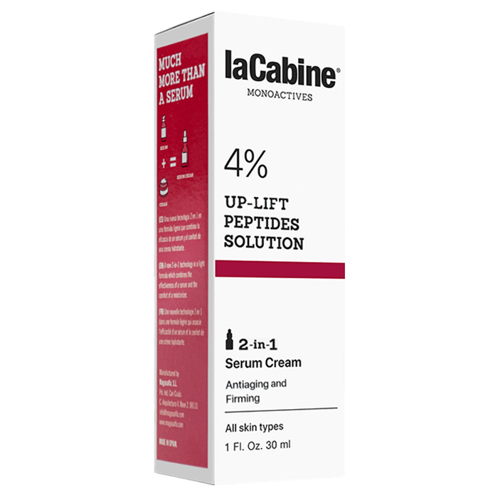 4% Up-Lift Peptides Solution 2-in-1 Serum Cream е с лека текстура и се абсорбира бързо. Подходящ за всички типове кожа, особено за зряла и за ежедневна употреба. Само за външна употреба.