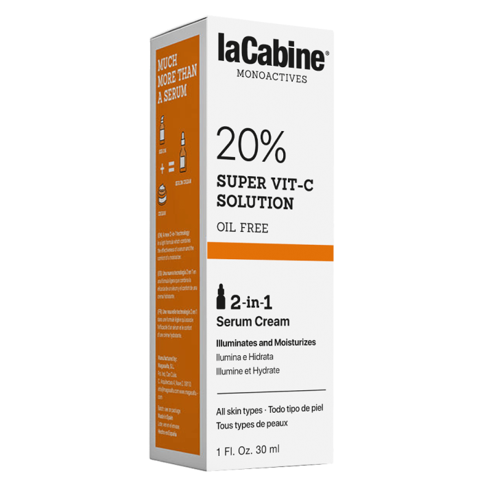 20% Supervit C 2-in-1 е серум-крем за лице, който осигурява максимална антиоксидантна защита и хидратация. Видимо озарява и подмладява кожата, възвръщайки нейната жизненост. Неутрализира свободните радикали, разрушаващи клетките, като по този начин подпомага възстановителните процеси и забавя стареенето. Съдържа 20% разтвор на витамин C.