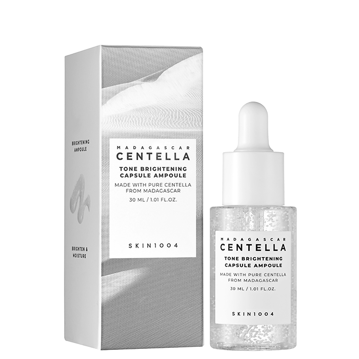 Серумът SKIN1004 Madagascar Centella Tone Brightening Capsule Ampoule хидратира кожата в дълбочина, като едновременно с това регенерира, успокоява и укрепва кожната бариера. Помага за поддържането на оптимални нива на хидратация, регулира баланса на влага и масла, повишава еластичността и забавя дегенерацията на клетките. Съдържа екстракт от азиатска центела, ниацинамид, транексамова киселина и мадекасозид, благодарение на които кожата е регенерирана, успокоена, изсветлена и с пдообрена хидратация. Серумът е с лека и почти водниста текстура с капсули, които се абсорират бързо след спукване, без да оставят кожата лепкава. Не съдържа аромати.
