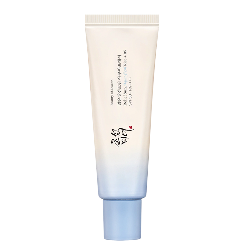 Beauty of Joseon Relief Aqua-Fresh Rice + B5 SPF50+ PA++++ е слънцезащитен крем с лека, немазна формула, който се абсорбира бързо и лесно от кожата. Съдържа екстракт от ориз, пробиотици, провитамин B5, които спомагат за поддържането на оптимални нива на хидратация, балансират и успокояват кожата. Със SPF50, който осигурява широкоспектърна защита от вредните UVA/UVB лъчи и агресори на околната среда.