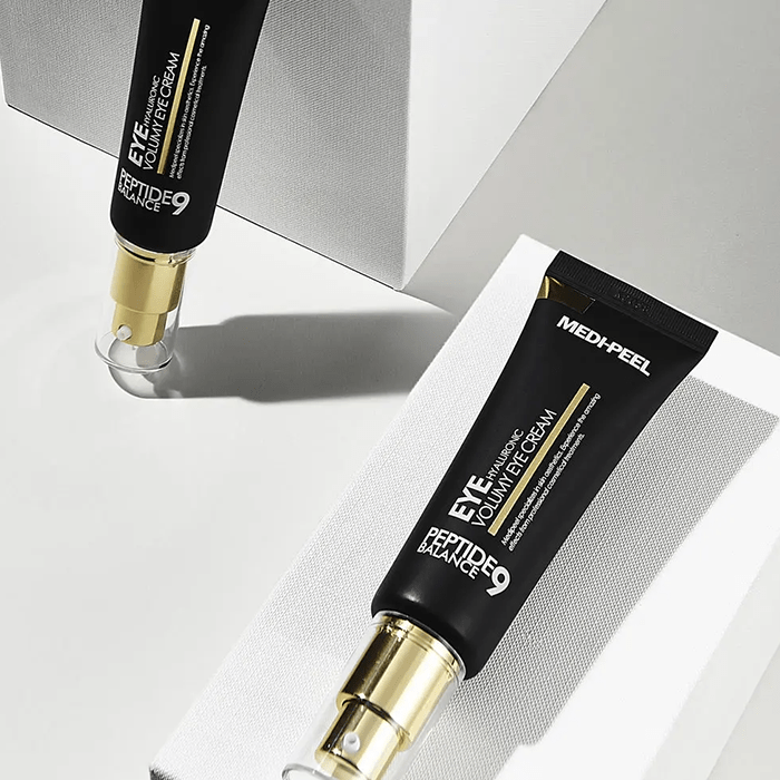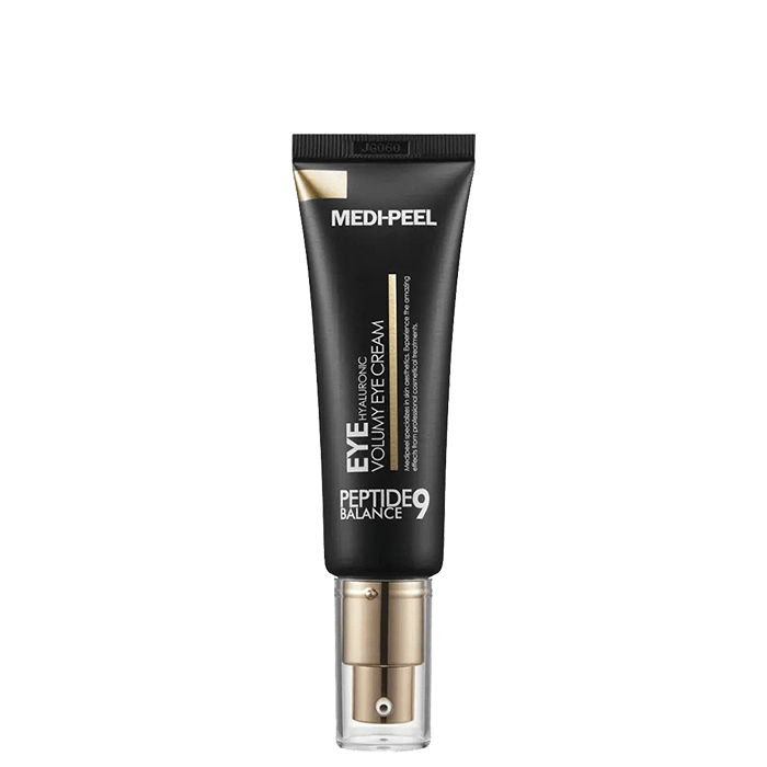 Околоочният крем Medi-Peel Peptide9 Hyaluronic Volumy Eye Cream стяга околоочната зона, изпълва я и се бори с признаците на стареене. Работи активно в посока повишаване на еластичността на кожата. Съдържа 9 вида пептиди, 4 вида хиалуронова киселина, ниацинамид и патентовани съставки (Liftonin). Комплексът от 9 вида пептиди има подмладяващ ефект, спомага за изглаждане на бръчките и запазване на младостта на кожата. Бори се с мимическите бръчки, подобрява еластичността и стимулира производството на колаген и еластин. Ниацинамидът помага за стягането на разширените пори, подобряването на неравномерния тен на кожата, омекотява и се бори с фините линии и бръчките. Хиалуроновата киселина прониква в дълбоките слоеве на кожата и изпълва клетките с необходимата влага. Укрепва и подобрява еластичността, предотвратявайки ранната поява на бръчки. Liftonin е основна съставка на ботокса и осигурява ефективно действие за подобряване на вида на кожата и бръчките. Има еластична кремообразна текстура, която го прави лесен за нанасяне. Малко количество е достатъчно за цялата околоочна зона, което го прави изключително икономичен.