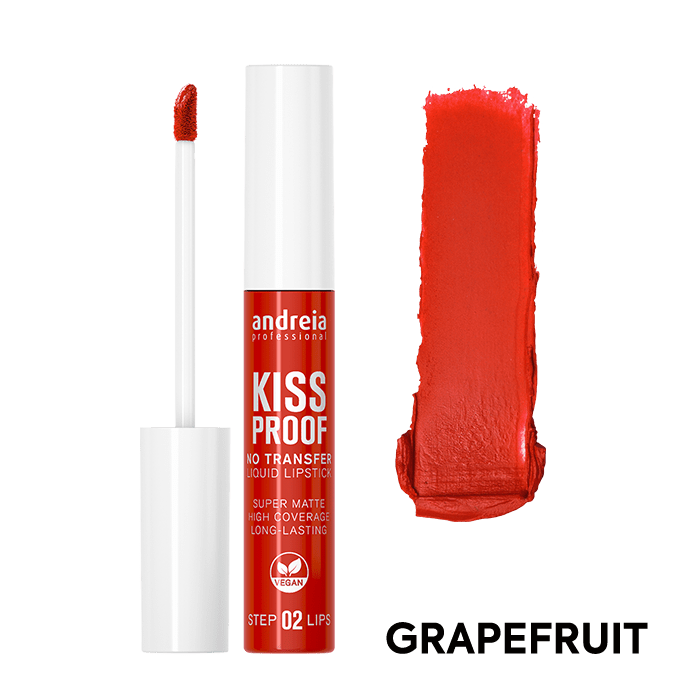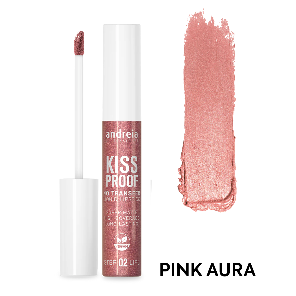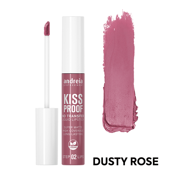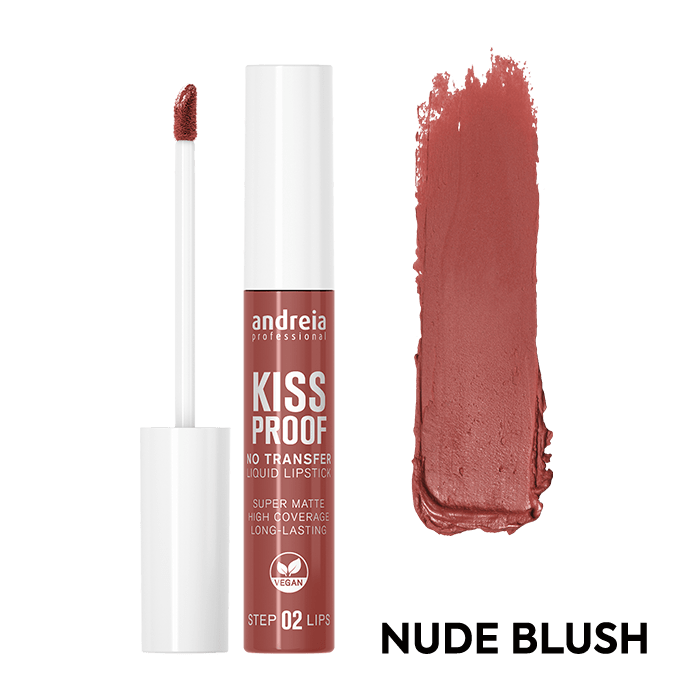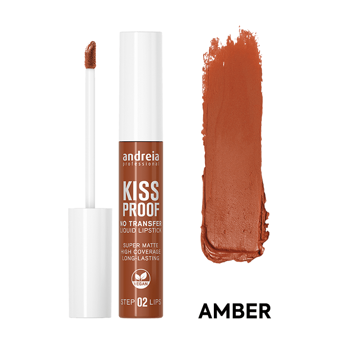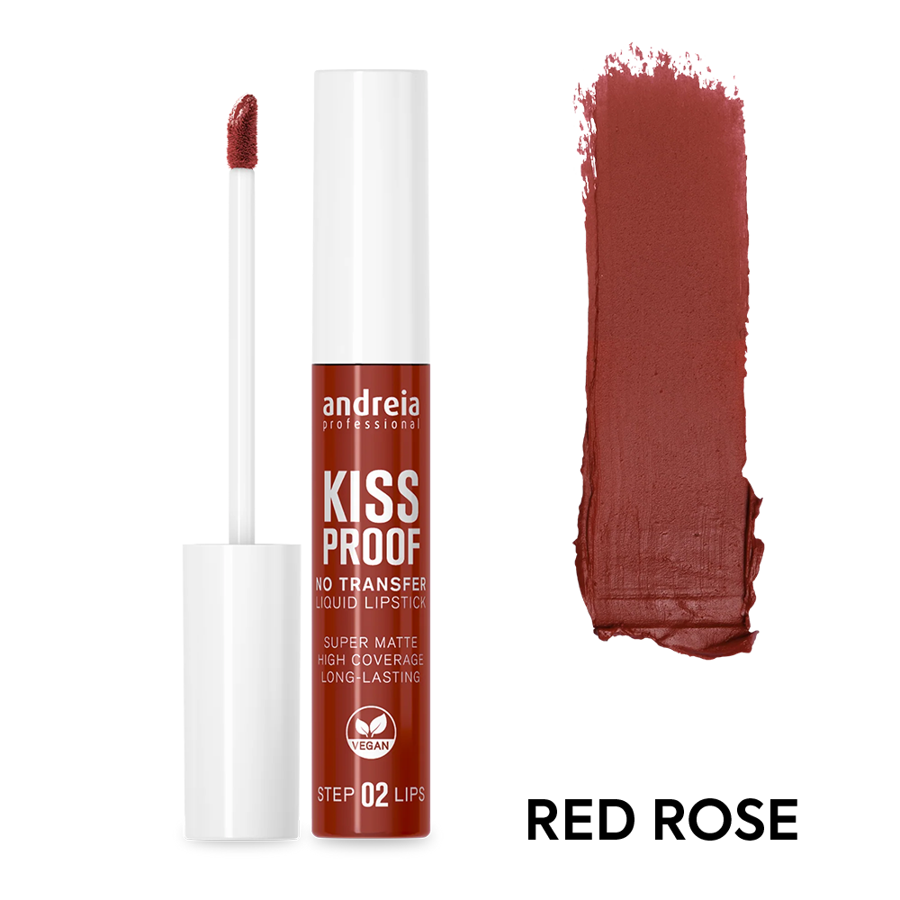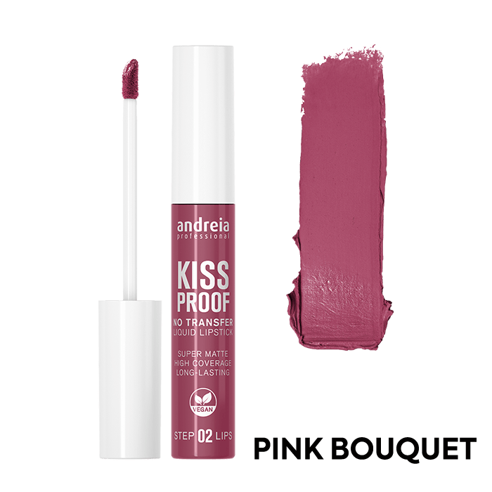 Течно матово червило Andreia Professional KISSPROOF - супер покритие с изтънчен матов ефект, за сочни устни с изразителен цвят. Запечатва се трайно върху устните, като оставя движението им свободно и комфортно - без сухота и слепване. Приляга нежно, благодарение на ергономичния апликатор, който достига до всяко ъгълче на устните и ги очертава с едно движение. Не се отпечатва при контакт и не оставя следи. Цветът остава трайно наситен и запечатан в продължение на часове.