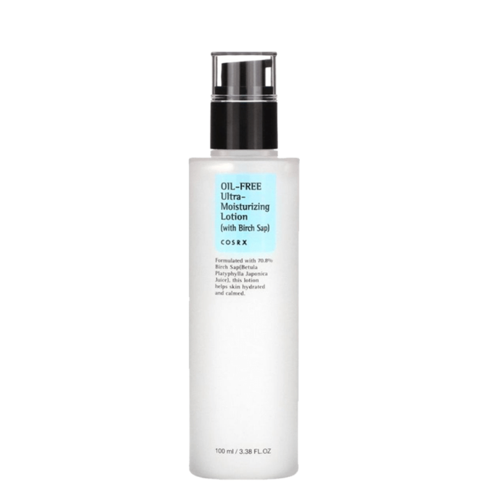 COSRX Oil Free Ultra Moisturizing Lotion е създаден да бъде перфектното допълнение към нежно ексфолиращите продукти на COSRX с AHA и BHA. Хидратира и подхранва кожата на лицето в дълбочина, без да оставя мазен филм. Съдържа 70% сок от бреза, която успокоява чувствителната, раздразнена и зачервена кожа.