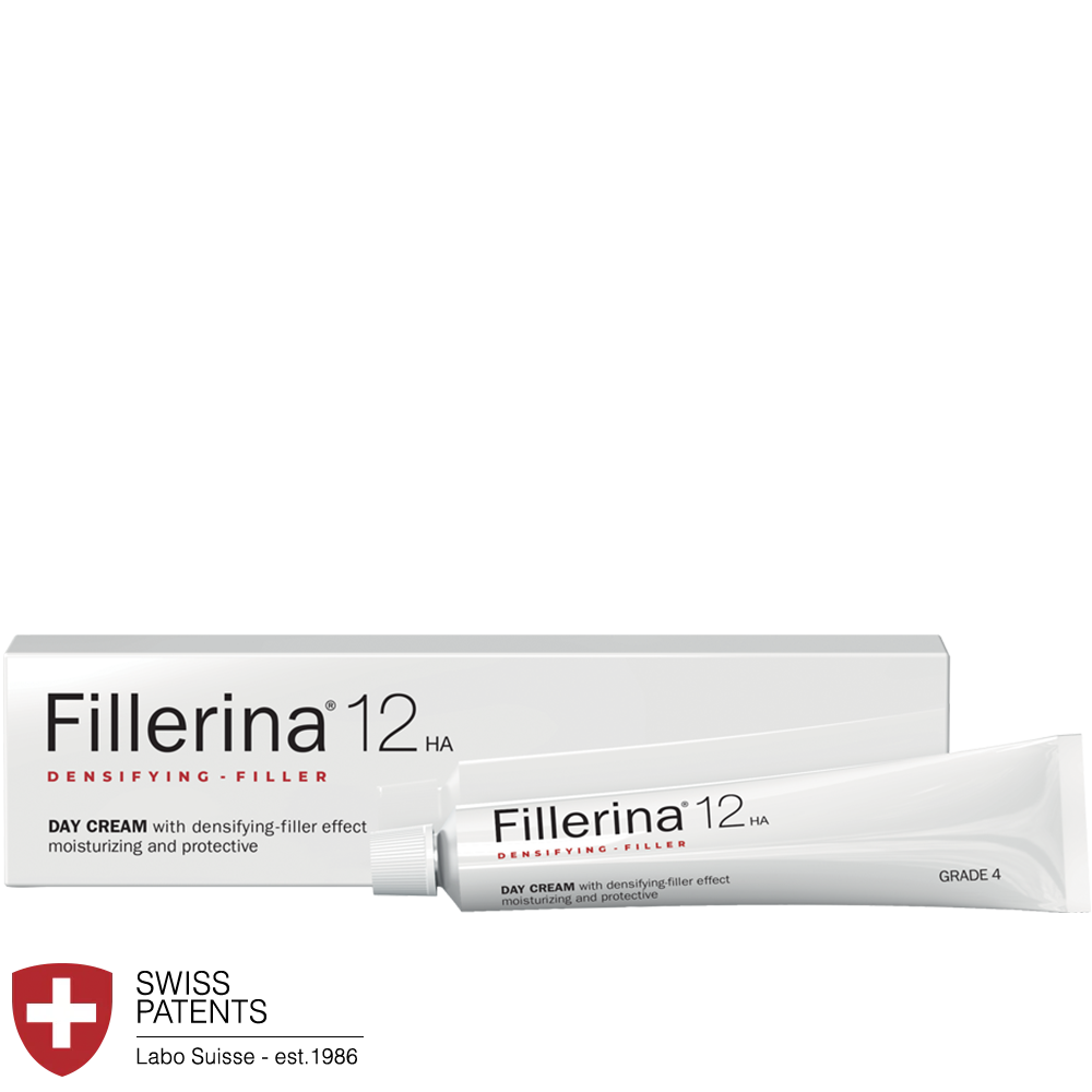 Уплътняващ филър дневен крем Ниво 4 Fillerina 12HA Densifying-Filler Day Cream Grade 4 е ежедневна терапия с подхранващ и стягащ ефект за цялото лице. Подходящ за употреба при наличие на дълбоки бръчки, мимически линии, изразен неравен микрорелеф и видима загуба на обем в тъканите. Хидратира и защитава, за употреба самостоятелно или в комбинация с останалите продукти на Fillerina.
