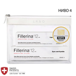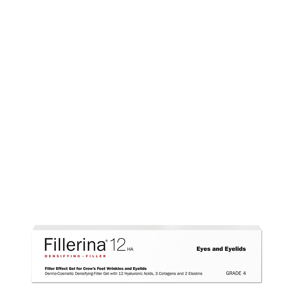 Fillerina 12HA Densifying-Filler Eyes and Eyelids е дермо-козметична терапия с гел, която стимулира запълването на бръчките тип пачи крак в околоочния контур и спомага за повдигане на клепачите. Съдържа силно модулирана концентрация от 12 вида хиалуронова киселина, допълнена от 3 вида колаген и 2 вида еластин с различни молекулни тегла, за придаване на твърдост и пластичност на тъканите в околоочния контур и клепачите. Ацетил-хексапептид-30 поддържа ефекта против бръчки на околоочния контур и върху клепачите, като спомага за намаляване на микроконтракциите на кожата, които причиняват появата на мимически линии. Специалният апликатор за околоочна зона и клепачи е с пръстовиден накрайник от хипоалергенен материал за масаж.