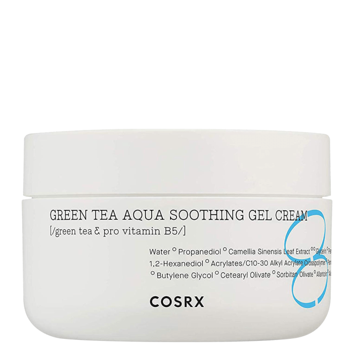 COSRX Hydrium Green Tea Aqua Soothing Gel е силно хидратиращ гел-крем за лице. Освежава кожата моментално, като я подхранва и успокоява. Гел текстурата му се топи в кожата и го прави идеален за употреба през лятото и от хора с комбинирана и мазна кожа. Не оставя бял филм, лепкав или мазен завършек върху кожата, не я утежнява и не причинява допълнително омазняване.