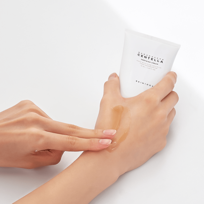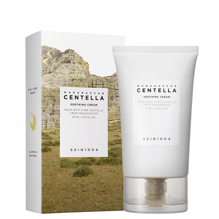 Кремът SKIN1004 Madagascar Centella Soothing Cream интензивно хидратира, регенерира и укрепва кожната бариера, възстановявайки нивата на влага. Възстановява увредената кожа, като едновременно с това регулира баланса на влага и масла. Тонизира и повишава еластичността, забавя дегенерацията на клетките и намалява вероятността от появата на бръчки. Съдържа Съдържа 4 вида серамиди на растителна основа.