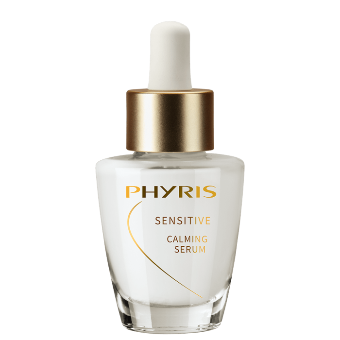 PHYRIS Sensitive Calming Serum e успокояващ серум, разработен с внимание към нуждите на чувствителната и суха кожа. Формула с активни съставки, витамини и масла, които подхранват и премахват усещането за опъване и дискомфорт. Заздравяват и укрепват нарушената кожна бариера, създавайки дълготраен защитен ефект. Успокояващото биологично действие на маслените екстракти спомага за намаляване на зачервяванията. Серумът има деликатни регенериращи свойства, които нежно обновяват клетките. Подпомага синтеза на протеини, липиди и серамиди, които имат заздравяващо действие на клетъчно ниво.