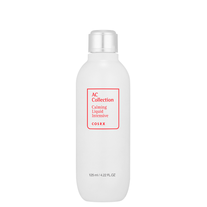 Cosrx AC Collection Calming Liquid Intensive_2.0 интензивно успокоява раздразнената и склонна към акне кожа. Формулиран с уникалния комплекс CentellAC-RX (Madecassic Acid, Asiaticoside, Asiatic Acid) на COSRX, който оптимизира естествените регенеративни ползи на азиатската центела. Естествените BHA (бета хидрокси киселини) и AHA (алфа хидрокси киселини) ефективно ексфолират кожата, лекувайки раздразнения и зачервявания, като същевременно изравняват тена. Съдържа прополис, който има естествени антибактериални свойства и спомага за поддържането на здравословен вид на кожата. Обогатена с цинк PCA, който помага да се намали рискът от инфекция и да се облекчи акнето. Не съдържа силикони, глутен и парабени.