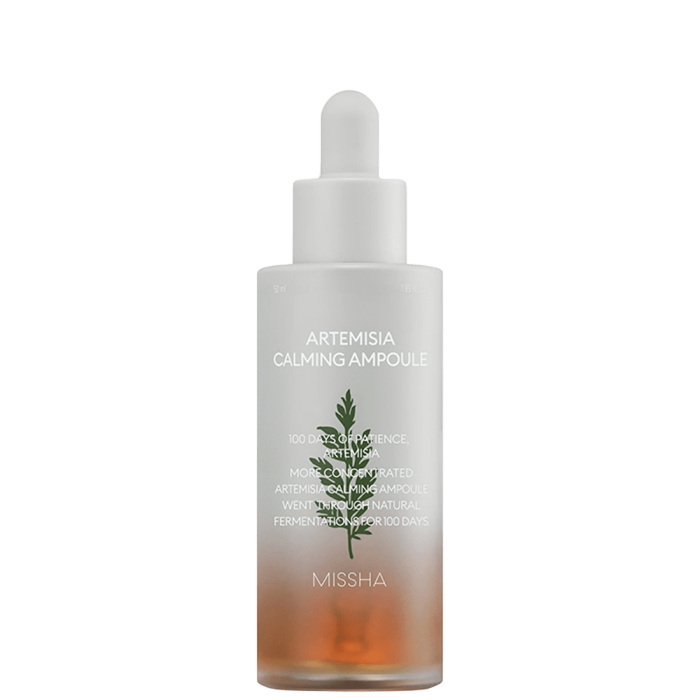 MISSHA Artemisia Calming Ampoule е ампула за лице с екстракт от див пелин, която помага за балансирането на нивата на влага в кожата, успокоява раздразненията и зачервяванията. Екстрактът от див пелин със 100-дневна двойна ферментация, който помага за изравняването на тена.