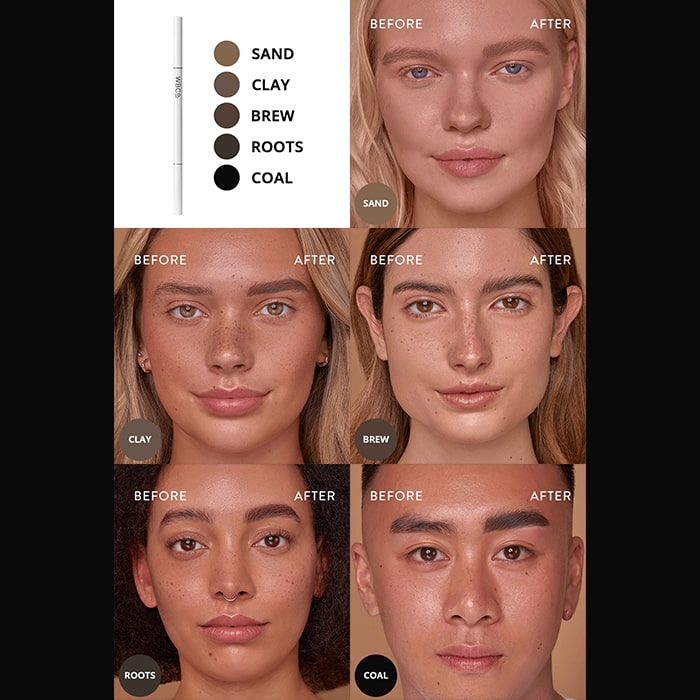 The Brow Pencil е водоустойчив молив за вежди, който комбинира четка за оформяне и сресване на веждите и прецизен молив за запълване и подчертаване на веждите. Дефинира контурите и уеднаквява веждите. Създава форма и дълбочина с нежен завършек и естествена визия.