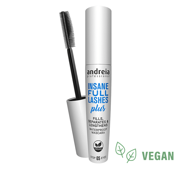Водоустойчива спирала за мигли Andreia Professional INSANE FULL LASHES PLUS Waterproof Mascara е подходяща за постигане на изваяни, извити мигли с мокър ефект. Придава им плътност, дължина и женствена извита форма, с естествен до интензивен ефект. Двустранната четка и леката кремообразна текстура позволява прецизно дефиниране на миглите. Формулата е с добавен восък, който осигурява прецизно и лесно нанасяне и привлекателен мокър завършек.