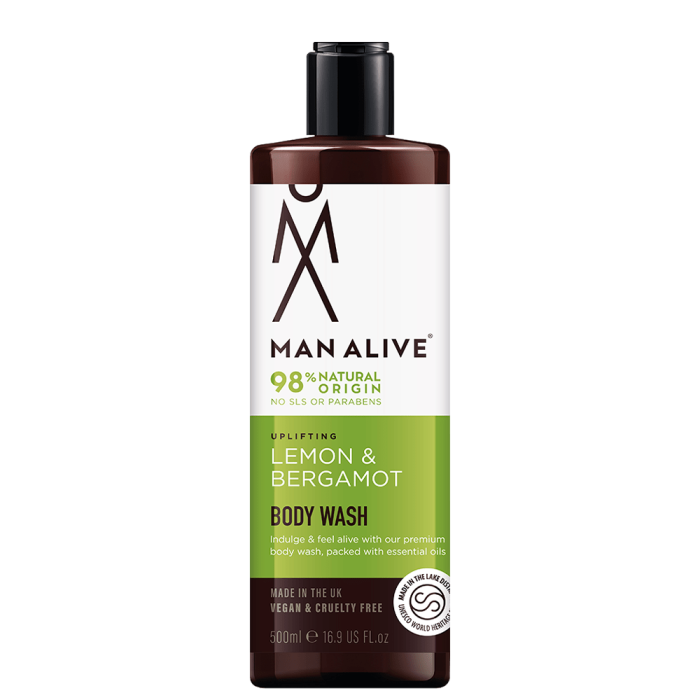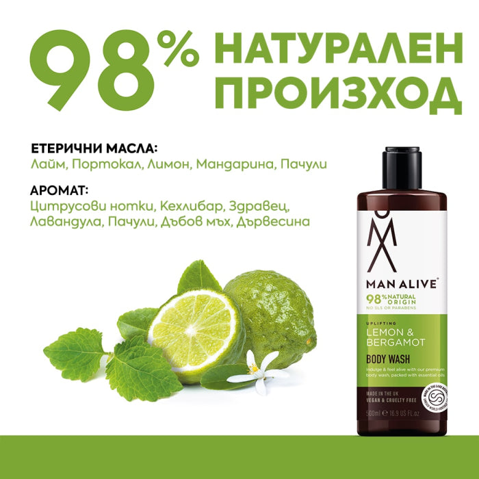 Освежете сетивата си с луксозния релаксиращ душ гел Man Alive Body Wash Lemon and Bergamot, формулиран с висококачествени етерични масла и 98% естествено извлечени съставки. Оставете се ароматите да ви завладеят и да отведат съзнанието ви на далечно ароматерапевтично пътешествие.