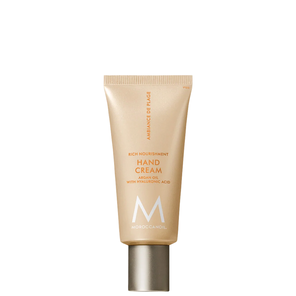Moroccanoil Hand Cream Ambiance de Plage е луксозен и богат хидратиращ крем за ръце. Съдържа емблематичната за Moroccanoil съставка – арганово олио, както и хидратираща хиалуронова киселина. Идеално овлажнява и възстановява сухата кожа на ръцете. Изключително богат и същевременно с лека формулa, кремът предоставя оптимална хидратация на кожата. Попива бързо и прави кожата мека и еластична, без да омазнява.