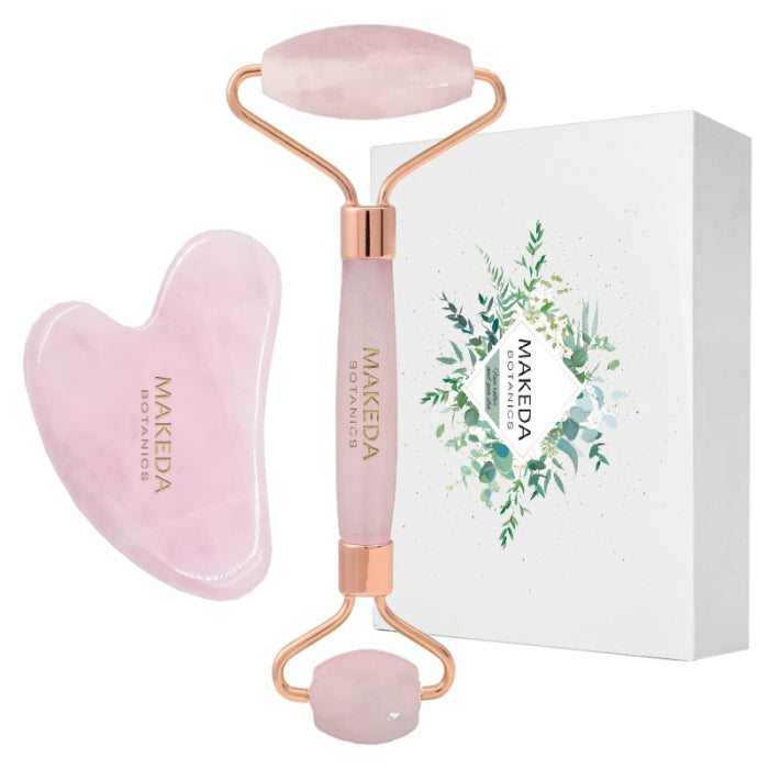 Комплектът ролер за лице и гуа ша MAKEDA Botanics са изработени от камък от розов кварц. Те стимулират кръвообращението и подобряват снабдяването на кожата с кислород, като по този начин подобряват еластичността, свежия вид и производството на колаген. Премахват признаците на умора като подпухналост и тъмни кръгове в зоната на очите.