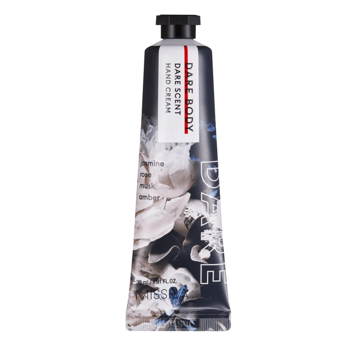 MISSHA Dare Body Hand Cream Dare Scent е хидратиращ и подхранващ крем за ръце с нежен цветен аромат на жасмин, роза, мускус и кехлибар. Кожата на ръцете е подложена на постоянното влияние на факторите на околната среда като студ, слънчеви лъчи, вятър. Кремът за ръце на MISSHA предпазва кожата от дехидратация, като едновременно с това бързо се абсорбира и не оставя лепкав слой.