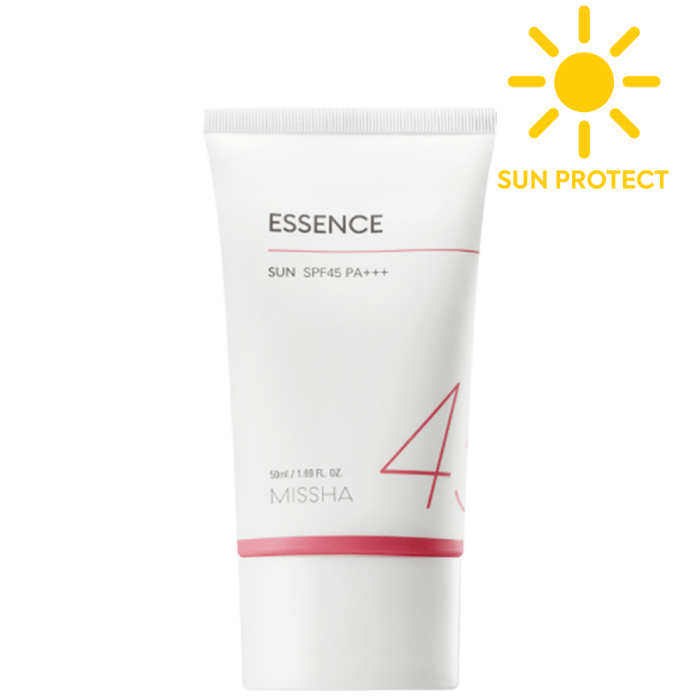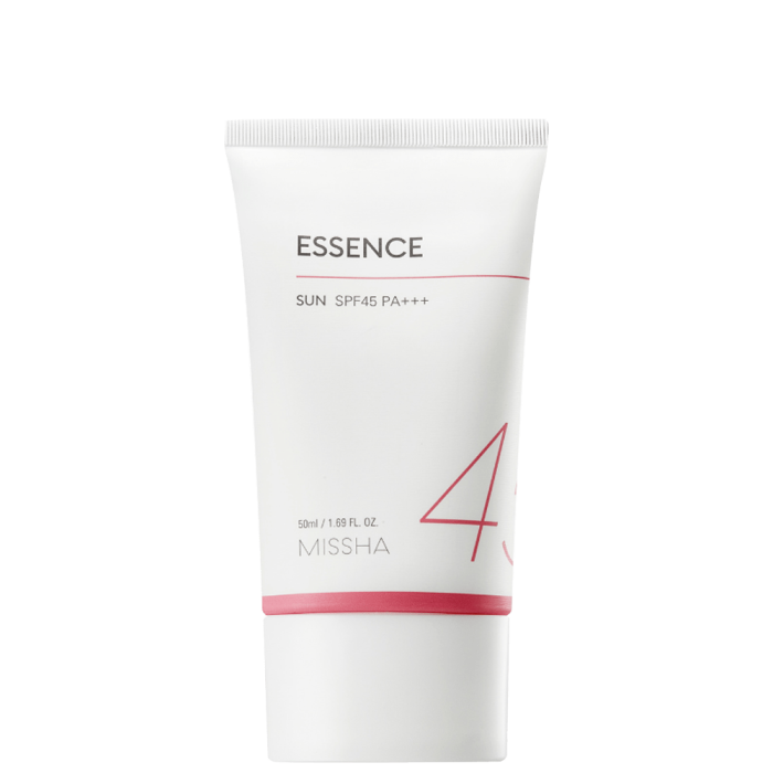 MISSHA All Around Safe Block Essence Sun SPF45 PA+++ е слънцезащитен лосион за лице, който осигурява на кожата необходимите хранителни вещества, като едновременно с това я предпазва от вредните UV лъчи със SPF45 и служи като перфектна основа за грим. Съдържа есенции от алое, краставица, кора от черница, женско биле, тученица и хамамелис, които предпазват кожата, хидратират я и я успокояват.