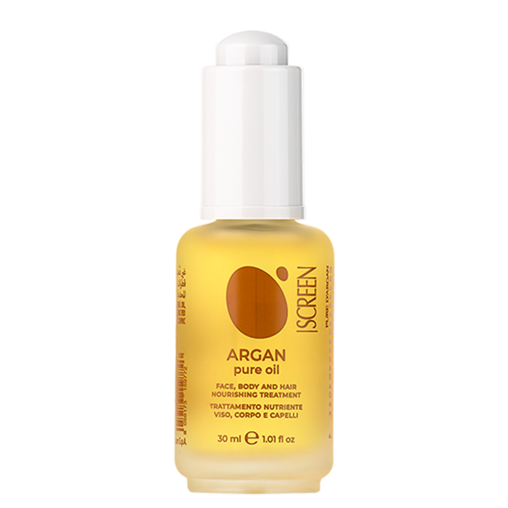 Чисто арганово масло за лице, тяло и коса SCREEN Pure D’Argan Pure Oil е еликсир за красота с мултифункционално действие – подхранва в дълбочина, хидратира и възстановява. Съдържа 96,5% чисто, сертифицирано масло от арган. Попива бързо и не оставя лепкави следи. Притежава мощни антиоксидантни свойства, като се бори със стареенето и придава сияен вид. Тонизира и стяга кожата на лицето, шията и деколтето, създава усещане за плътност и подобрява еластичността. Възстановява нивата на хидратация и придава озарен вид при суха кожа на лицето, ръцете и тялото, при напукани устни и нокти. Попълва фините бръчки на лицето. Придава блясък и подхранва косата. Подходящо за всеки тип кожа и възраст. Подходящо за коса, лице и тяло.