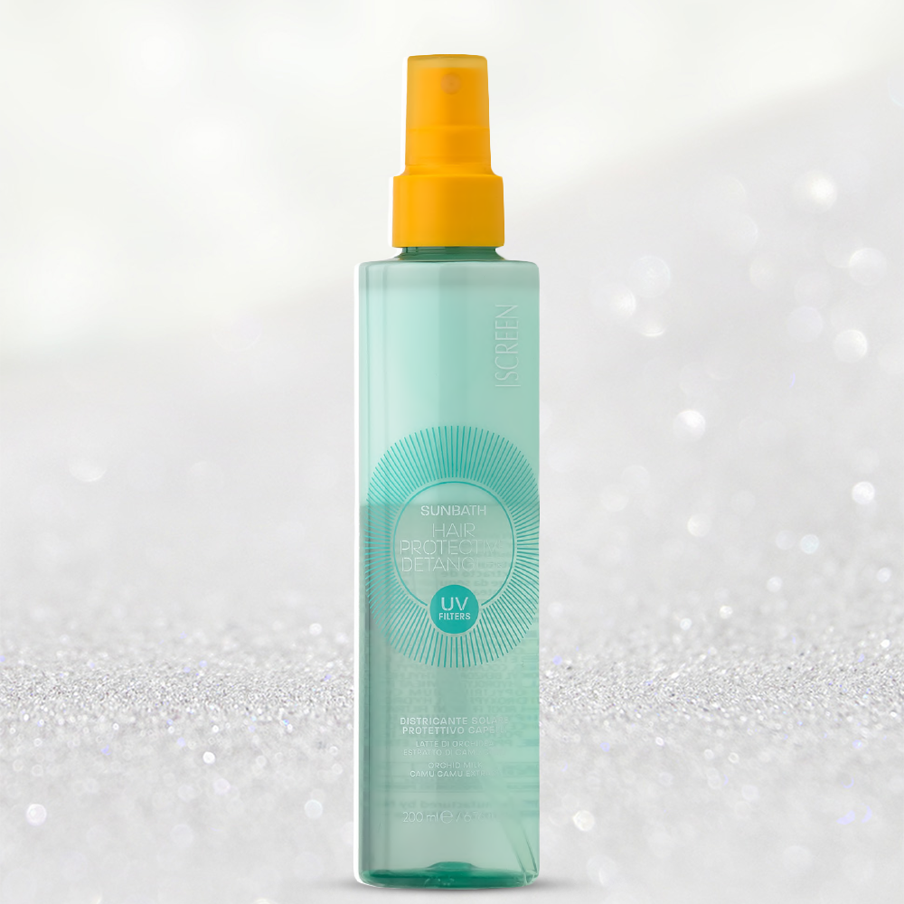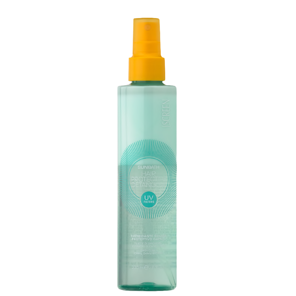 Двуфазен спрей Suncontrol Sunbath Hair Protective Detangler съчетава защита на косата от вредното въздействие на UV-лъчите и лесно разплитане на дължините след излагане на слънце и контакт със солена и хлорирана вода. При продължително излагане, UV-лъчите увреждат косъма, като разграждат връзките между кератиновите влакна и повдигат най-външния слой (кутикулата), правейки косата пореста и податлива на загуба на влага, причинявайки сухота, чупливост и избледняване на цвета. Благодарение на широкоспектърни UV-филтри и натурални активни съставки мляко от орхидея и екстракт от каму каму, Suncontrol Sunbath Hair Protective Detangler неутрализира вредното въздействие на UV-лъчите и предпазва от увреждане и дехидратация, улеснява разресването и оформянето през летните дни. Подходящ за всеки тип и текстура коса.